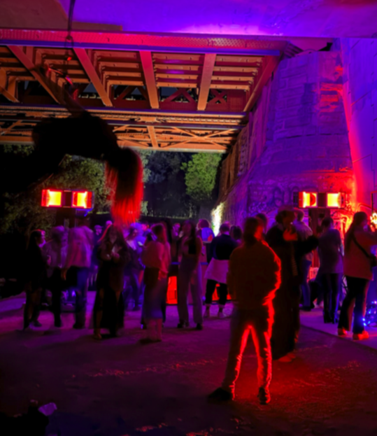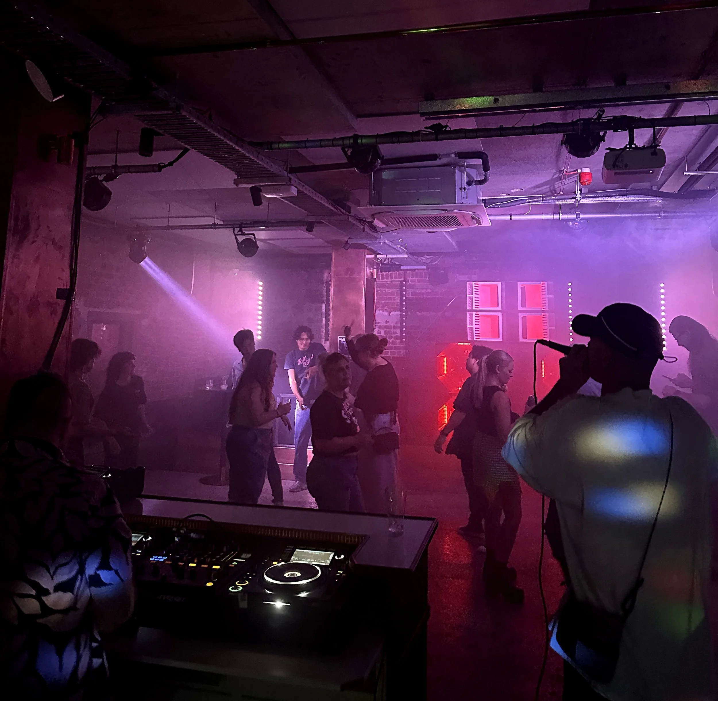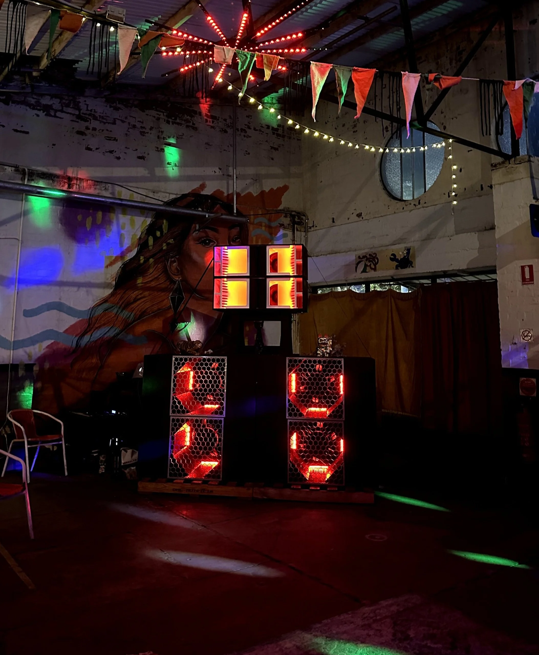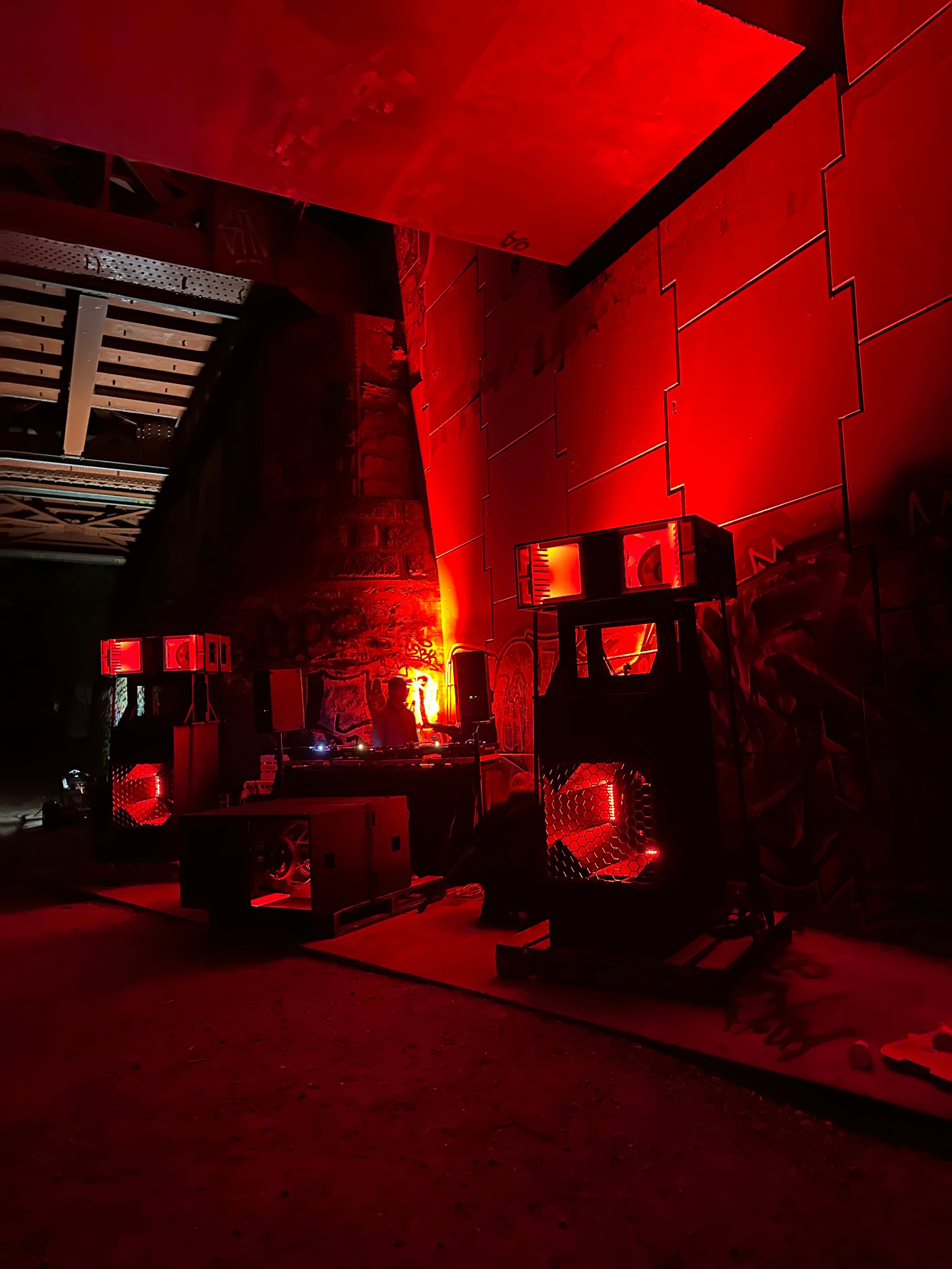 MORE ABOUT EVENT: Mono stack set up on the stage with the DJ in the middle of the dance for that Boiler room feel.