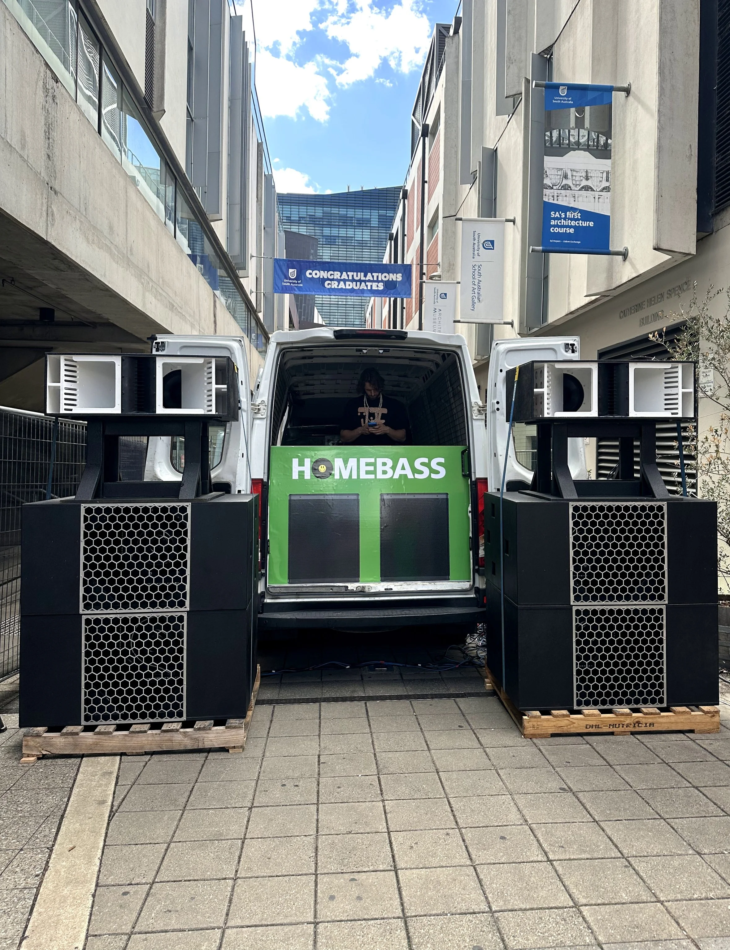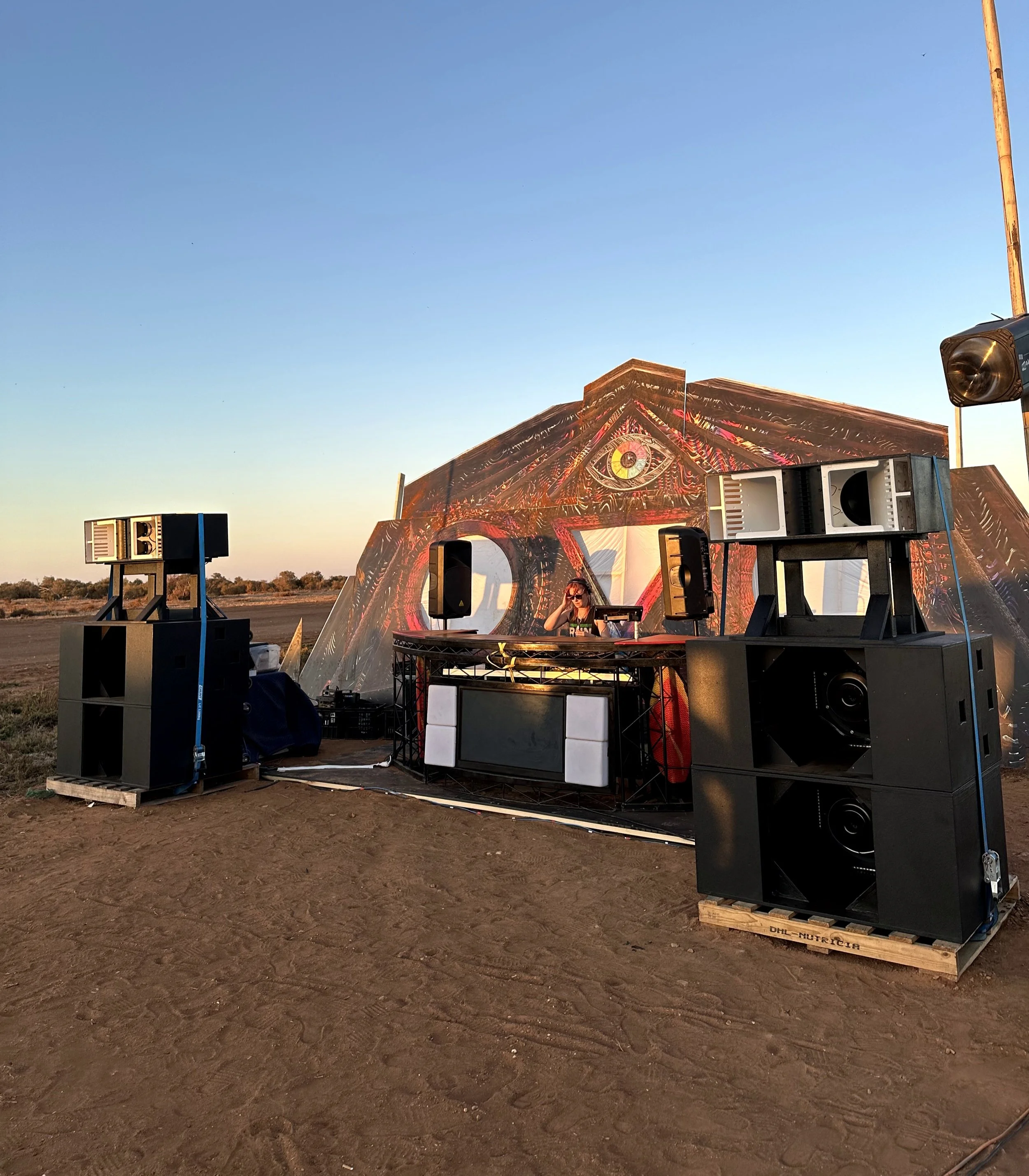 MORE ABOUT EVENT: First outdoor setup for the rig using 4x ELF 1x 18” Subwoofers and 2x WSV2 kick/tops